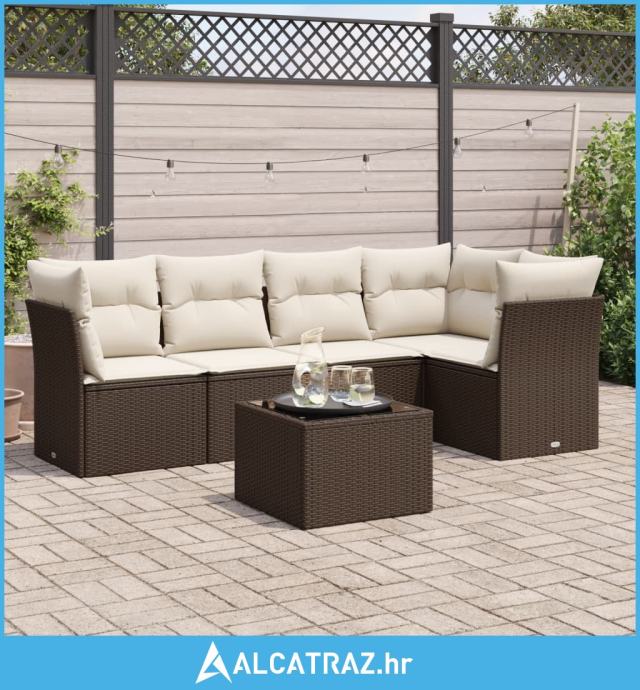 6-dijelni set vrtnih sofa od poliratana s jastucima smeđi - NOVO