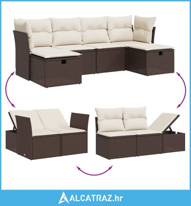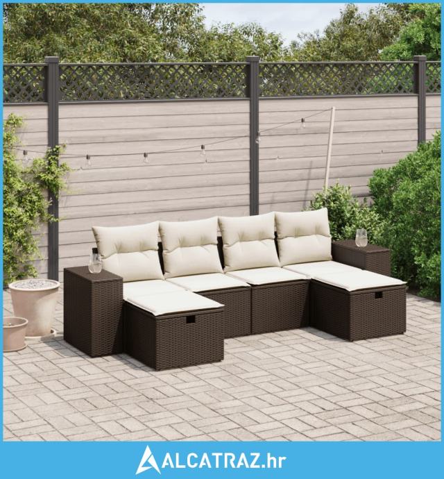 6-dijelni set vrtnih sofa od poliratana s jastucima smeđi - NOVO