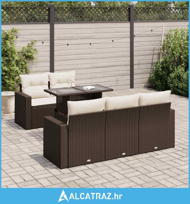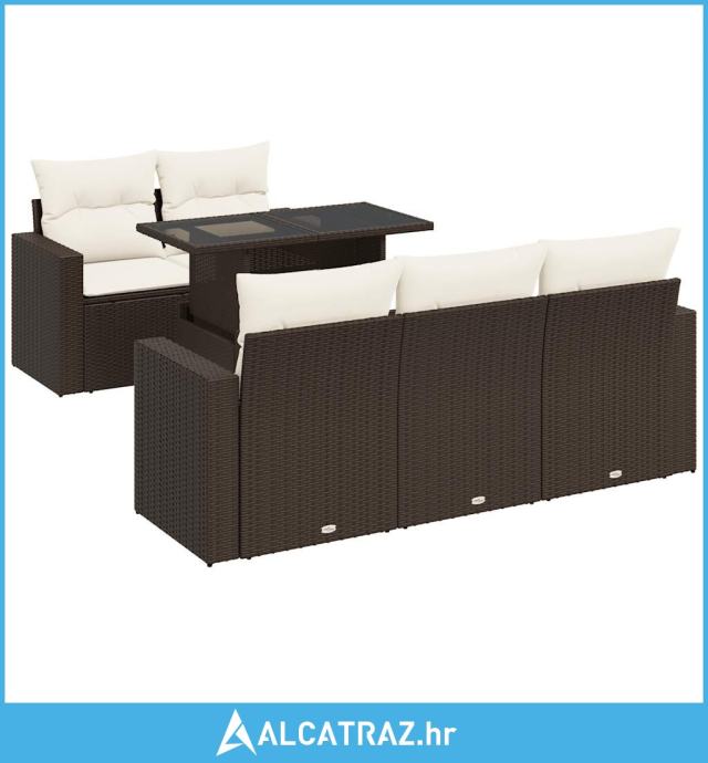 6-dijelni set vrtnih sofa od poliratana s jastucima smeđi - NOVO