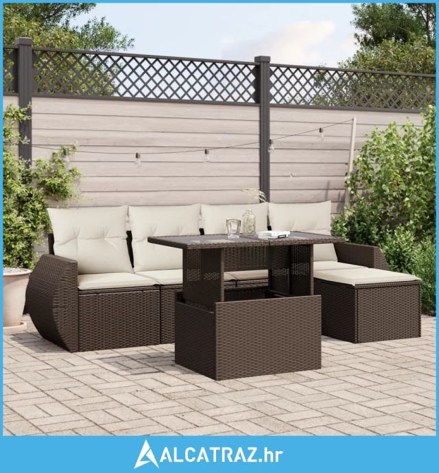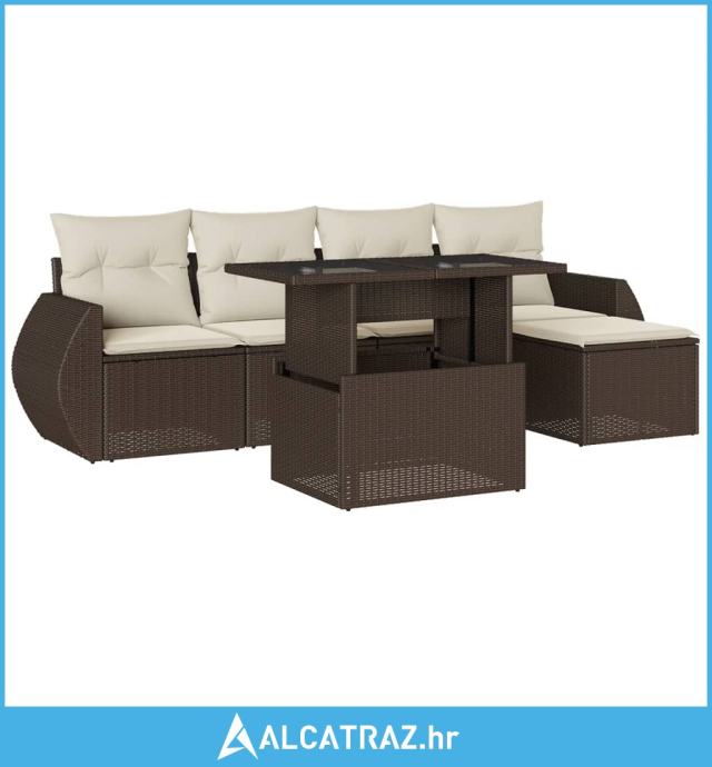 6-dijelni set vrtnih sofa od poliratana s jastucima smeđi - NOVO