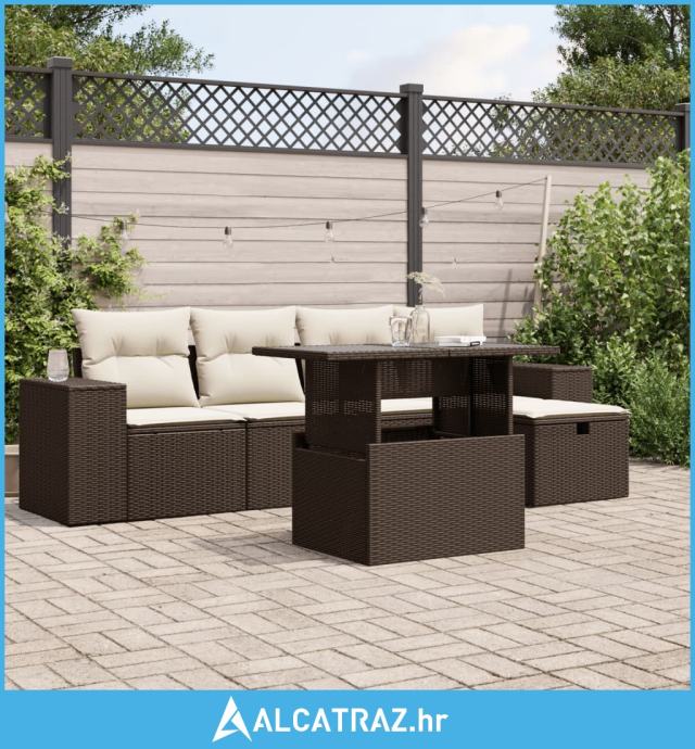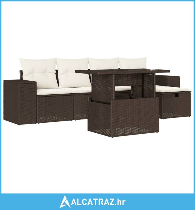 6-dijelni set vrtnih sofa od poliratana s jastucima smeđi - NOVO