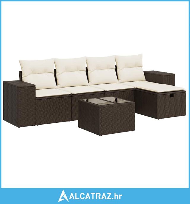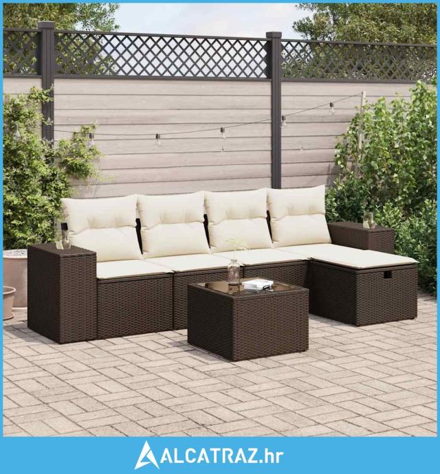 6-dijelni set vrtnih sofa od poliratana s jastucima smeđi - NOVO