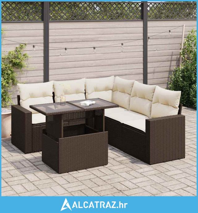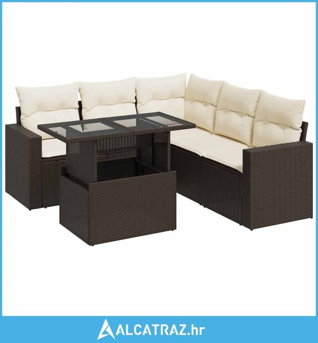 6-dijelni set vrtnih sofa od poliratana s jastucima smeđi - NOVO