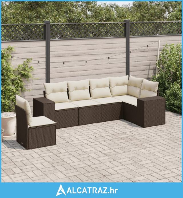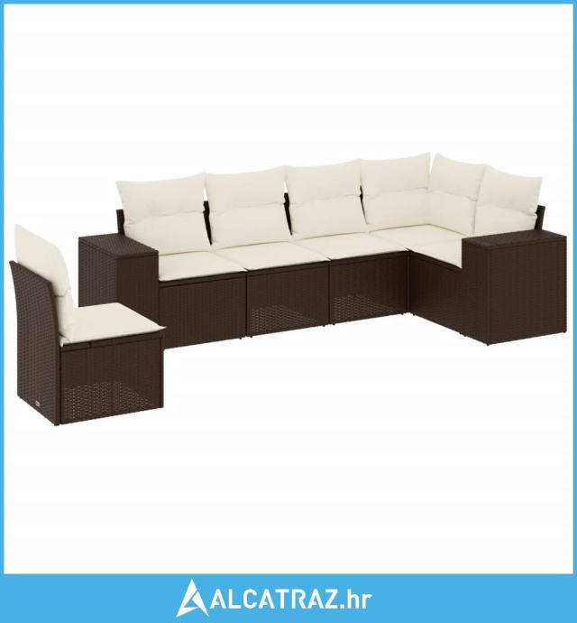 6-dijelni set vrtnih sofa od poliratana s jastucima smeđi - NOVO