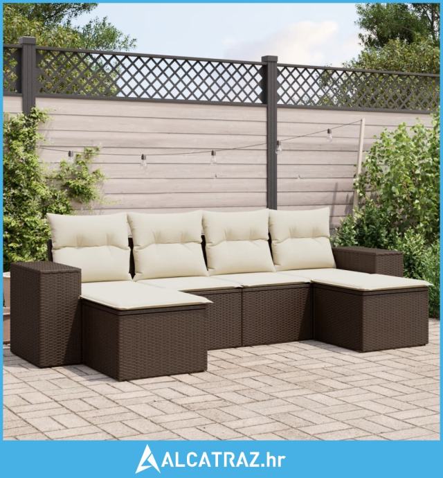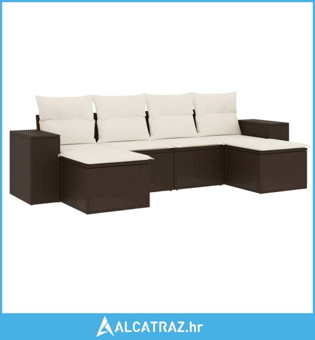 6-dijelni set vrtnih sofa od poliratana s jastucima smeđi - NOVO