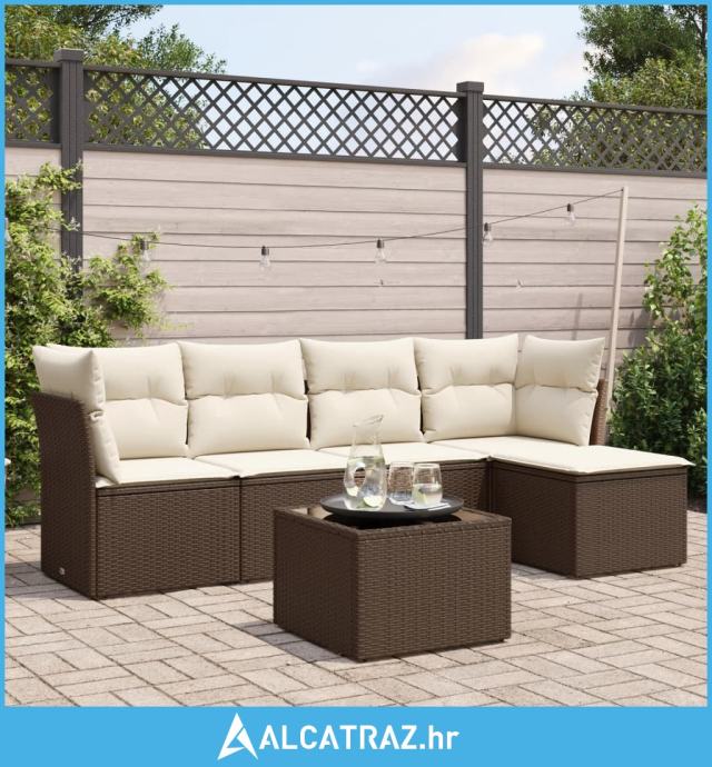 6-dijelni set vrtnih sofa od poliratana s jastucima smeđi - NOVO