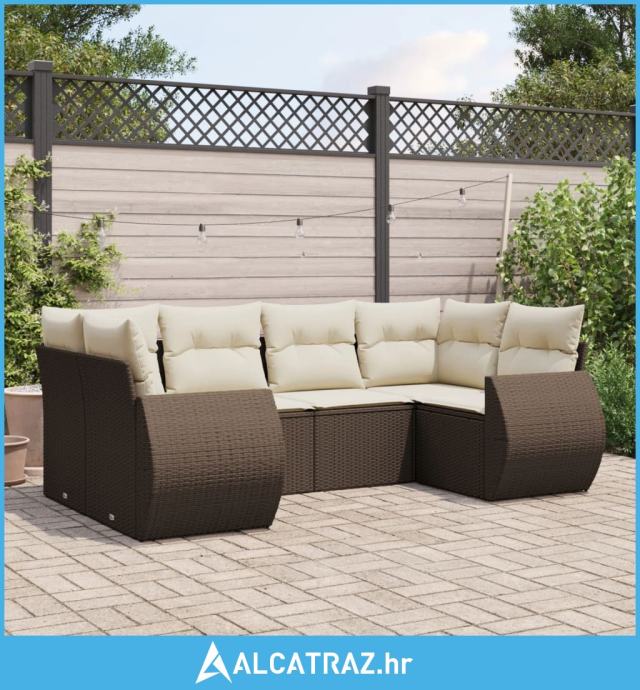 6-dijelni set vrtnih sofa od poliratana s jastucima smeđi - NOVO