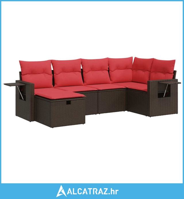 6-dijelni set vrtnih sofa od poliratana s jastucima smeđi - NOVO