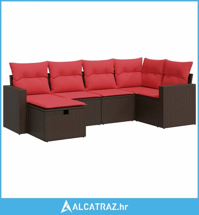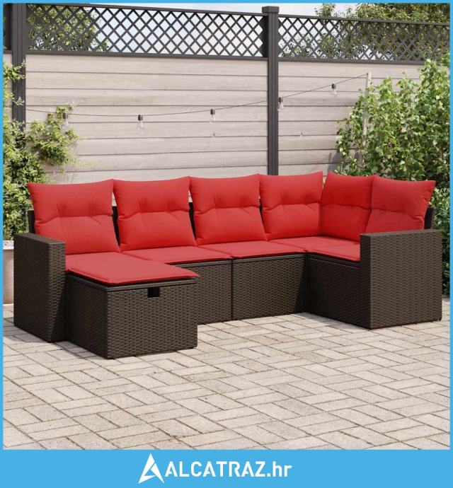6-dijelni set vrtnih sofa od poliratana s jastucima smeđi - NOVO