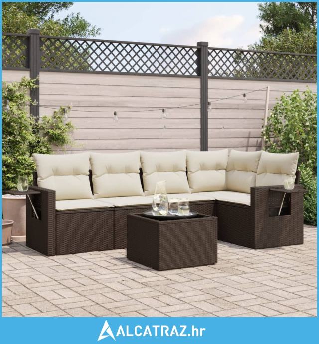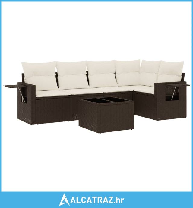 6-dijelni set vrtnih sofa od poliratana s jastucima smeđi - NOVO
