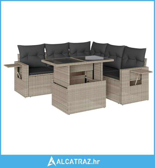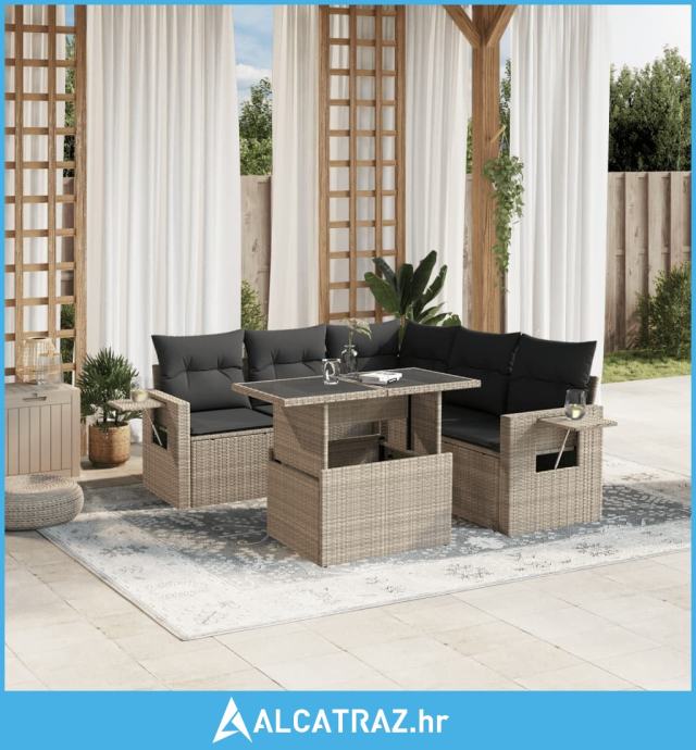 6-dijelni set vrtnih sofa od poliratana s jastucima svjetlosivi - NOVO