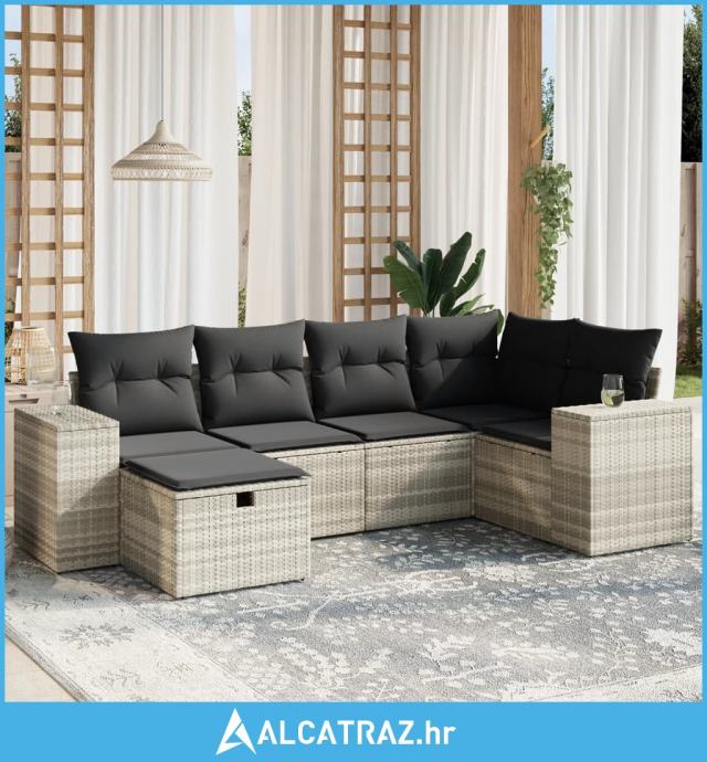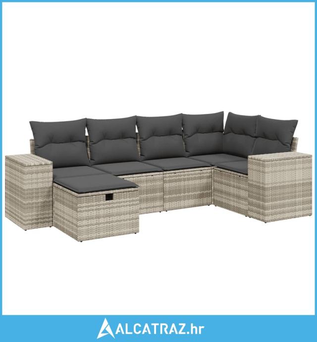6-dijelni set vrtnih sofa od poliratana s jastucima svjetlosivi - NOVO