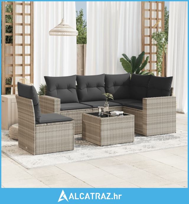 6-dijelni set vrtnih sofa od poliratana s jastucima svjetlosivi - NOVO