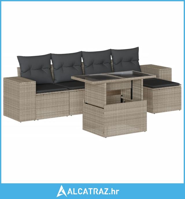 6-dijelni set vrtnih sofa od poliratana s jastucima svjetlosivi - NOVO