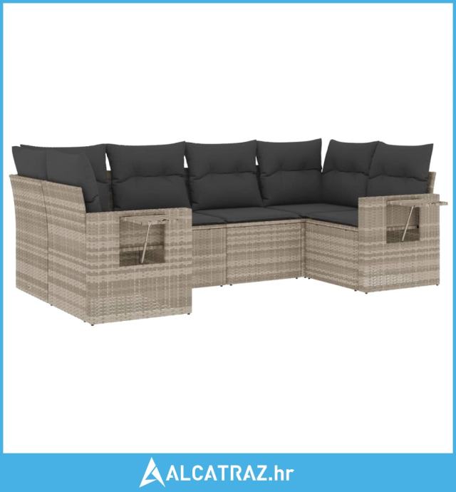 6-dijelni set vrtnih sofa od poliratana s jastucima svjetlosivi - NOVO