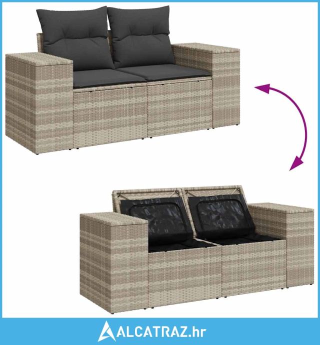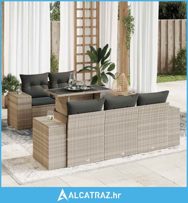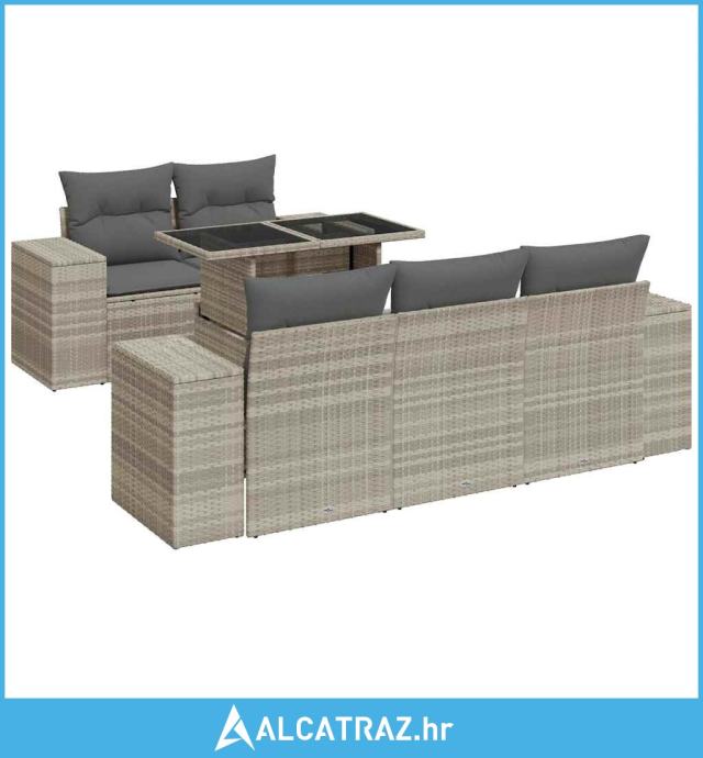 6-dijelni set vrtnih sofa od poliratana s jastucima svjetlosivi - NOVO