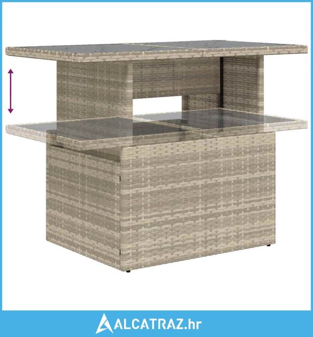 - Podesiva stolna ploča: Stolna ploča može se podići kako bi stol bio viši, što pretvara ovaj vanjski stol iz stolića za kavu u blagovaonski stol. Savršen je za goste ili obroke vani.