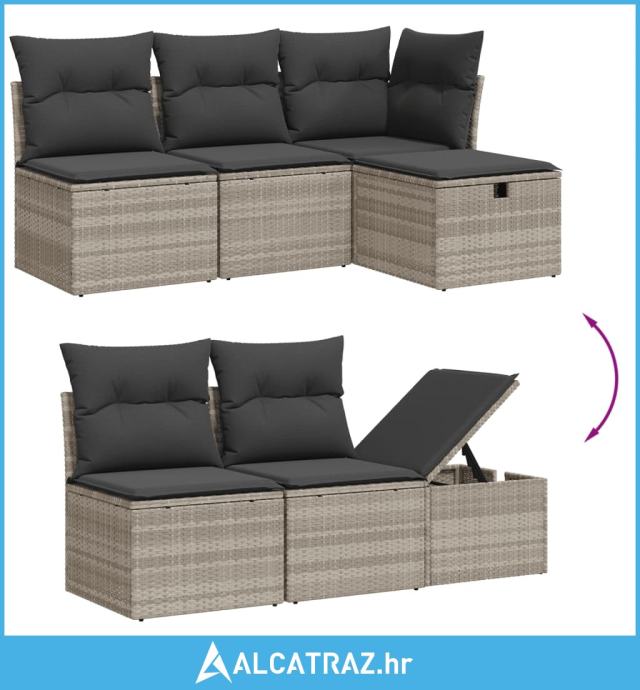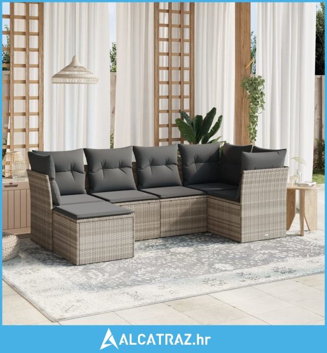 6-dijelni set vrtnih sofa od poliratana s jastucima svjetlosivi - NOVO