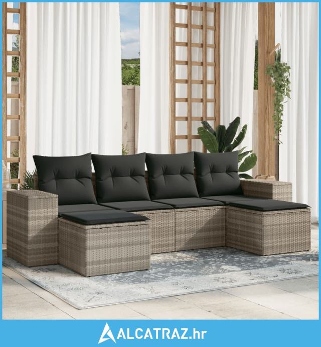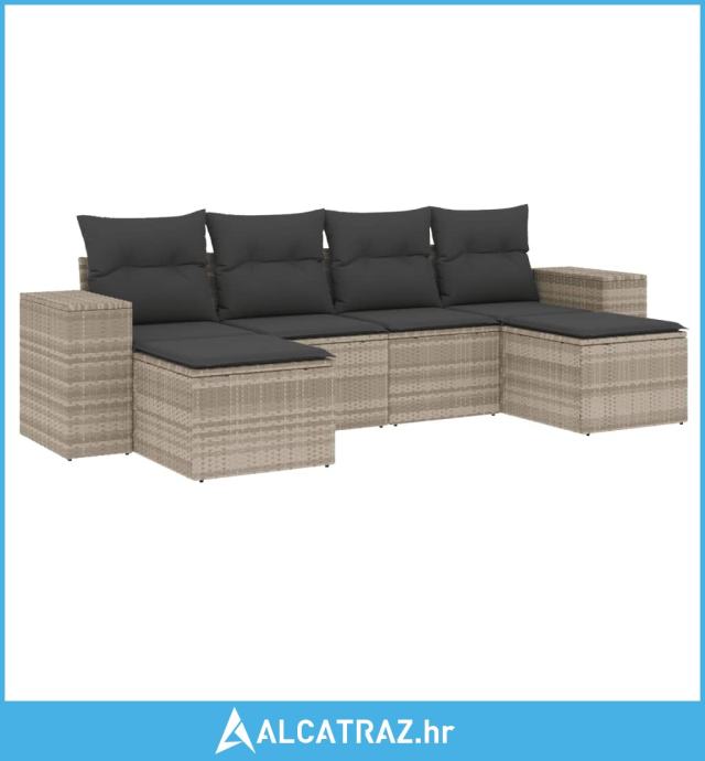 6-dijelni set vrtnih sofa od poliratana s jastucima svjetlosivi - NOVO