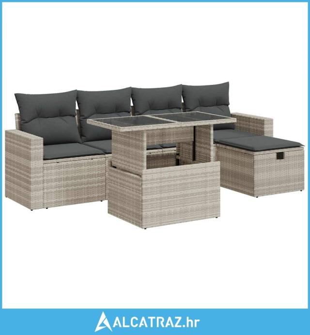 6-dijelni set vrtnih sofa od poliratana s jastucima svjetlosivi - NOVO