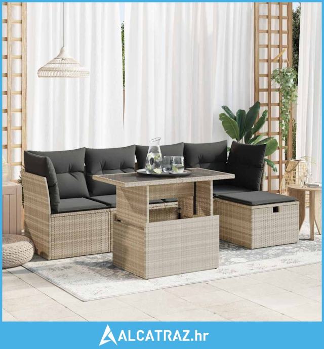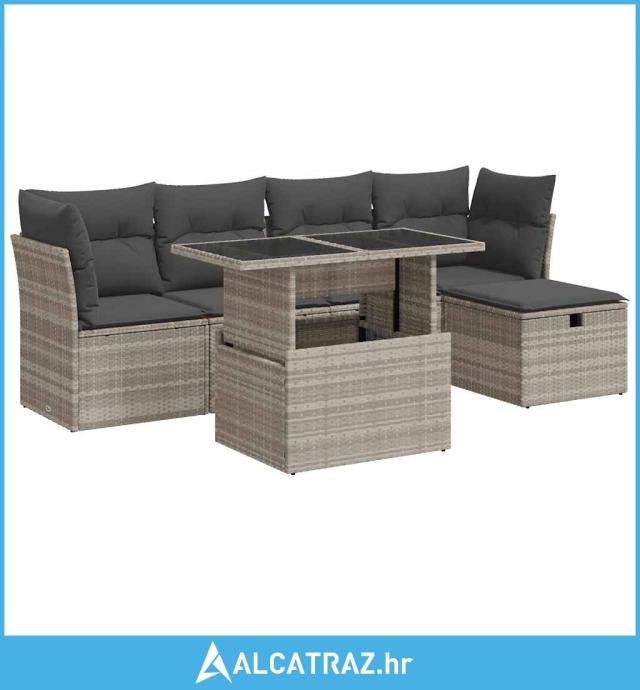 6-dijelni set vrtnih sofa od poliratana s jastucima svjetlosivi - NOVO