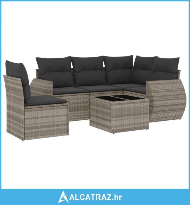 6-dijelni set vrtnih sofa od poliratana s jastucima svjetlosivi - NOVO
