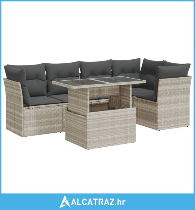 6-dijelni set vrtnih sofa od poliratana s jastucima svjetlosivi - NOVO