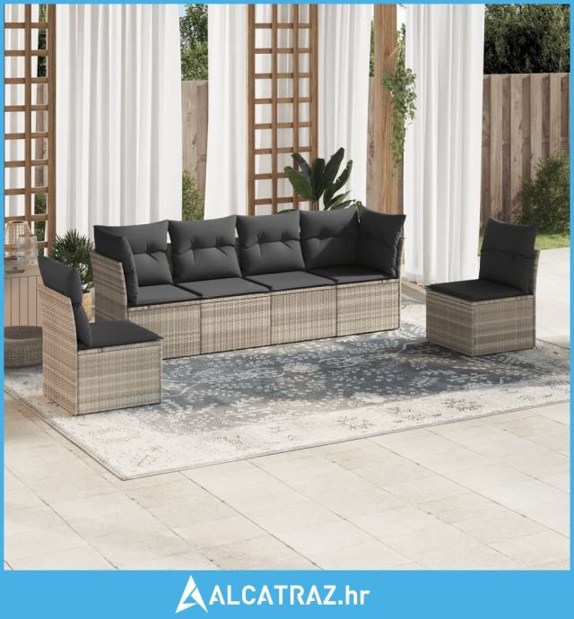6-dijelni set vrtnih sofa od poliratana s jastucima svjetlosivi - NOVO