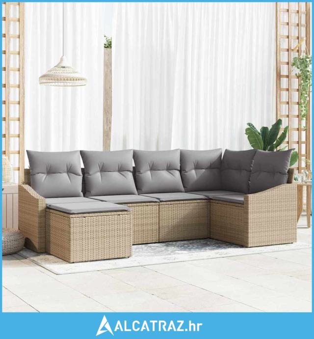 6-dijelni vrtni blagovaonski set s jastučićima Bež Poli ratan - NOVO