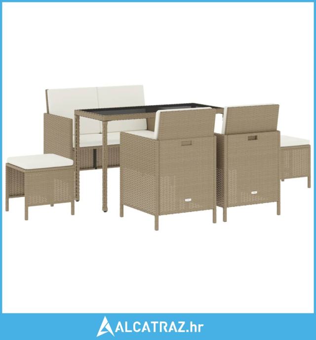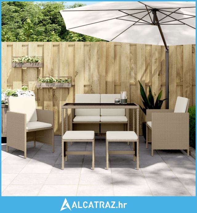 6-dijelni vrtni blagovaonski set s jastucima bež od poliratana - NOVO