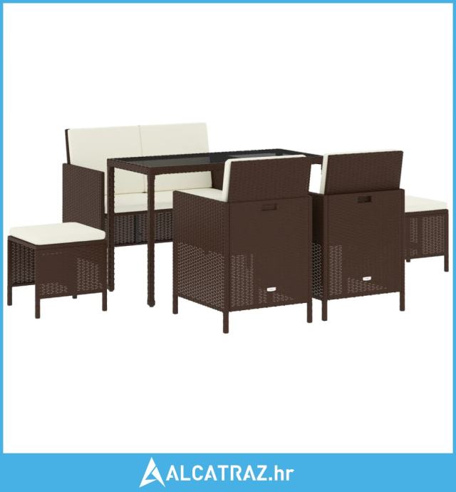 6-dijelni vrtni blagovaonski set s jastucima poliratan smeđi - NOVO