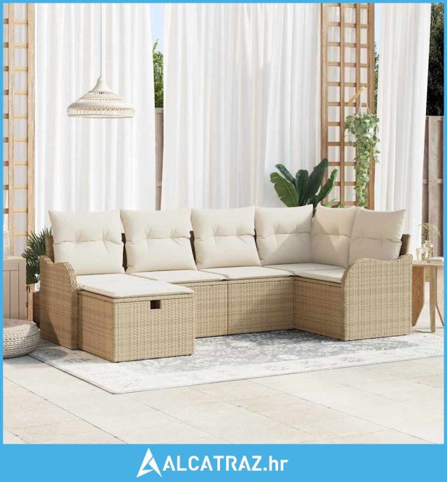 6-dijelni Vrtni Kauč Set s Jastučićima Bež Poly Ratan, 2-sjedalni Vrtn