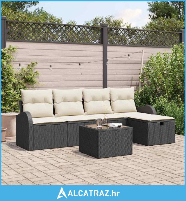 6-dijelni Vrtni Kauč Set s Jastučićima, Crni Poliratanski - NOVO