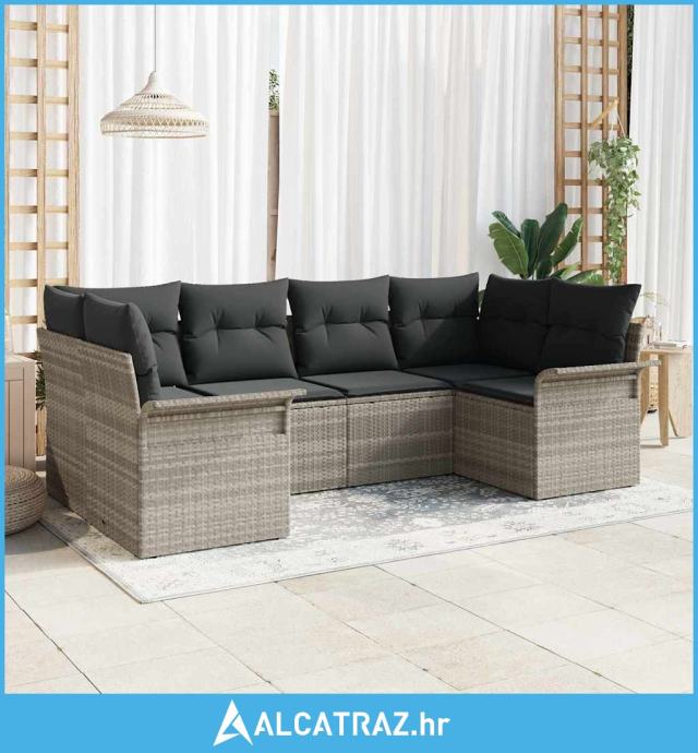 6-dijelni vrtni kauč set s jastučićima svijetlosivi poli ratan - NOVO
