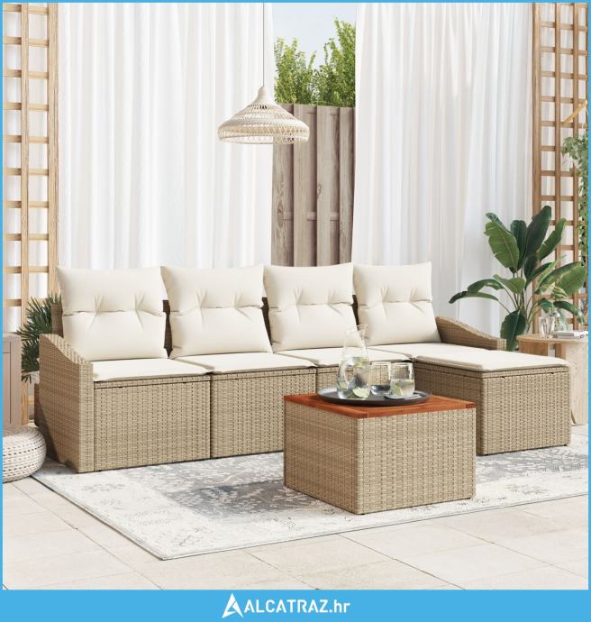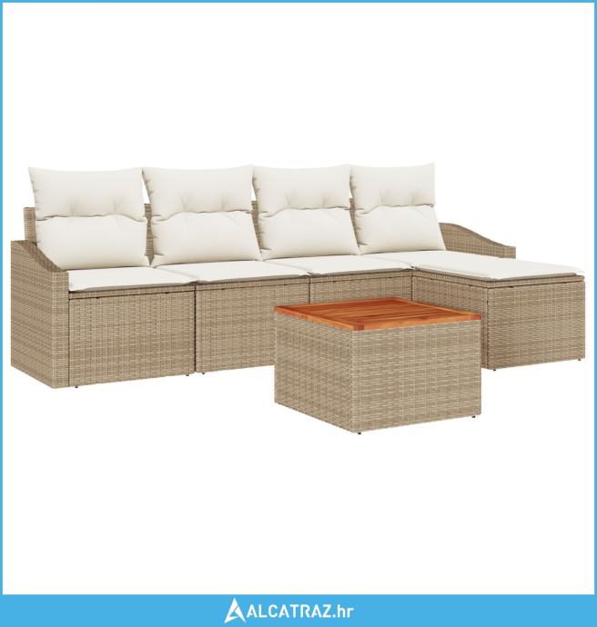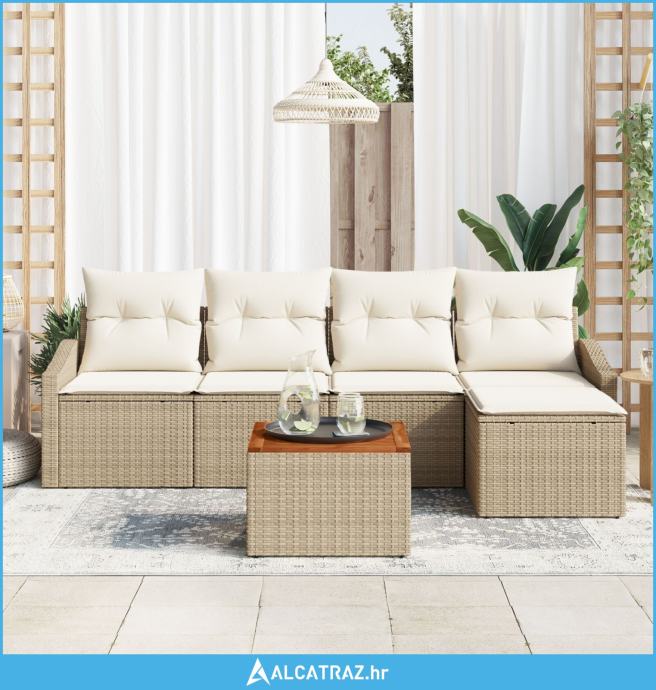 6-dijelni vrtni set kauča s jastučićima bež poliratan akacija - NOVO