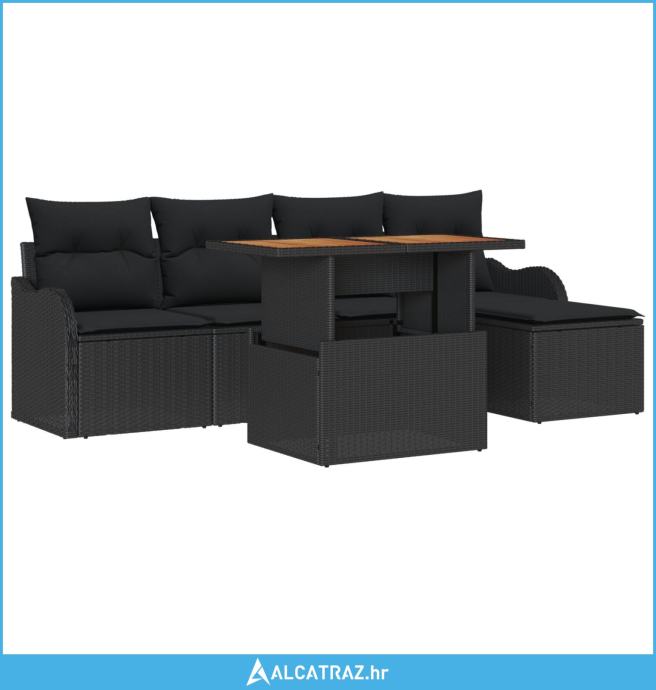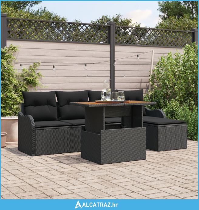 6-dijelni vrtni set sofâ s jastucima u crnom poli ratan i akaciji, dvo