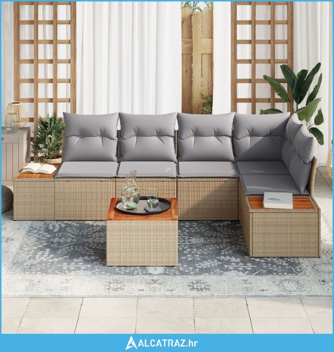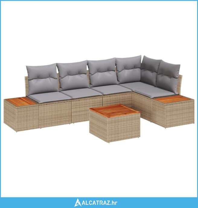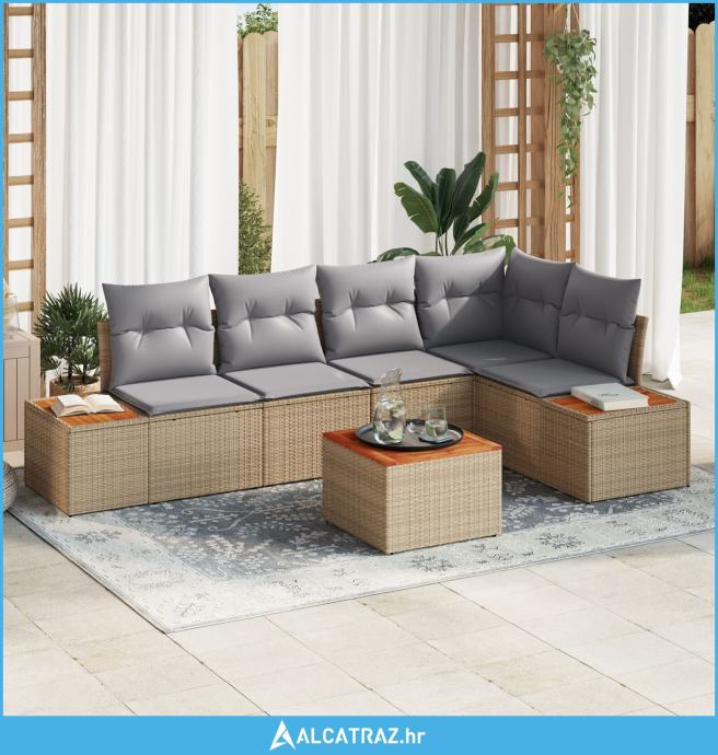 6-dijelni vrtni sofa set s jastučićima Bež Poli Ratan Akacija - NOVO