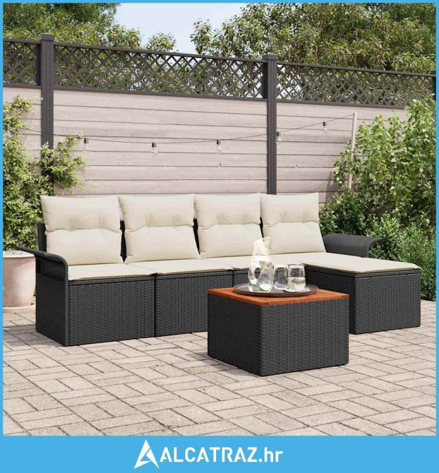 6-dijelni vrtni sofa set s jastučićima crni poli ratan akacije - NOVO