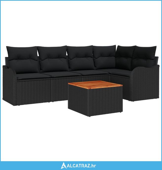 6 komada vrtni sofa set s jastučićima crni poli ratan akacija, 2-sjedn