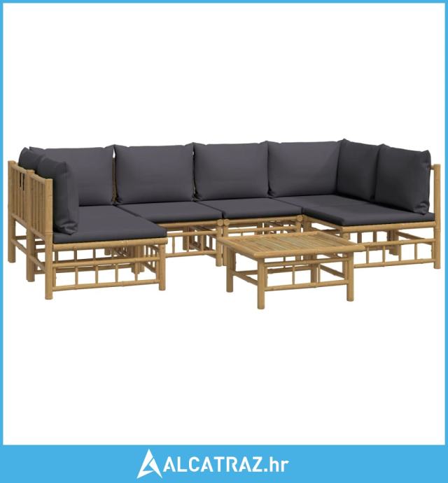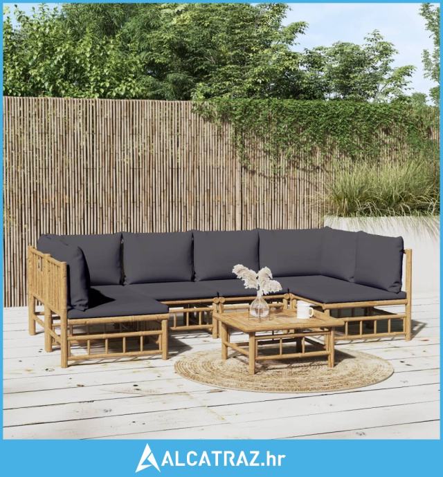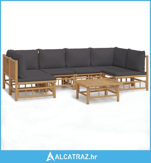 7-dijelna vrtna garnitura od bambusa s tamnosivim jastucima - NOVO