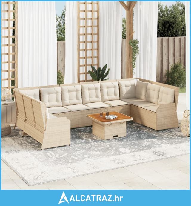 7-dijelna vrtna garnitura s jastucima bež od poliratana - NOVO