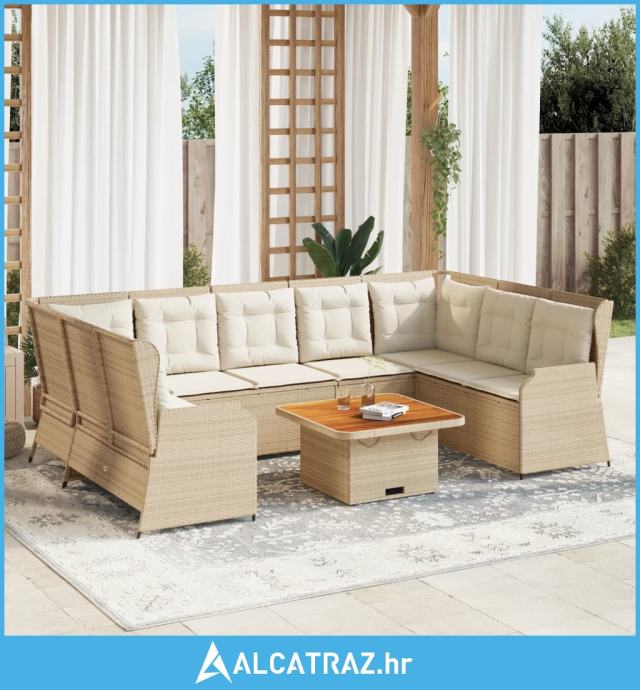 7-dijelna vrtna garnitura s jastucima bež od poliratana - NOVO