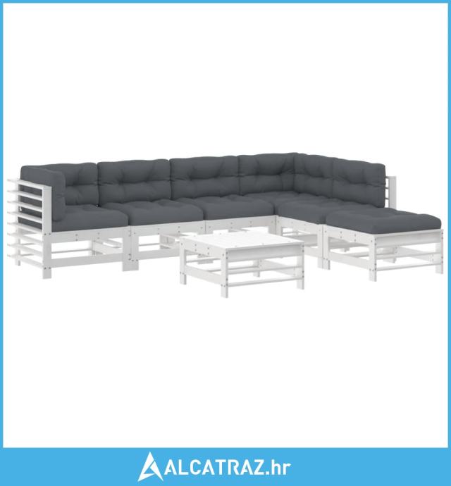 7-dijelna vrtna garnitura s jastucima bijela od masivnog drva - NOVO