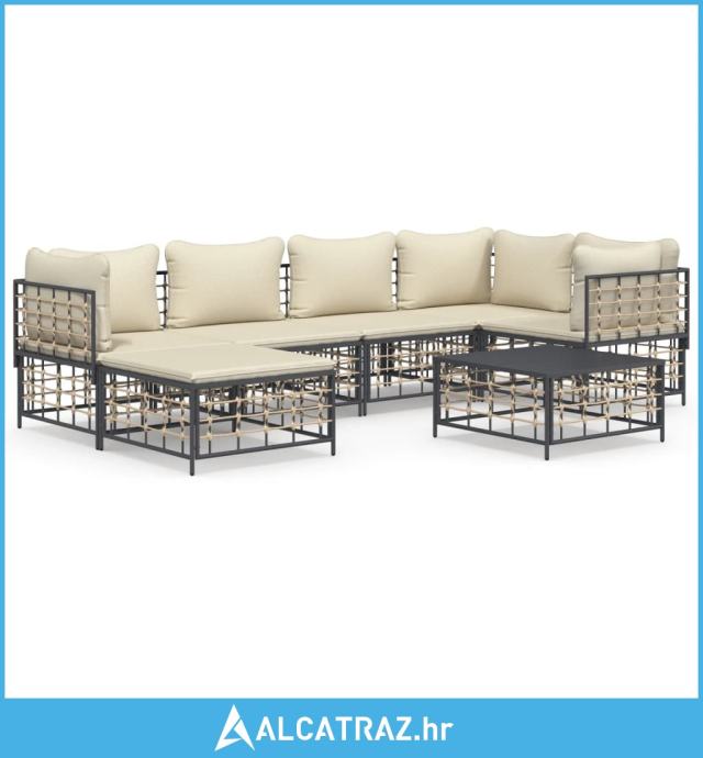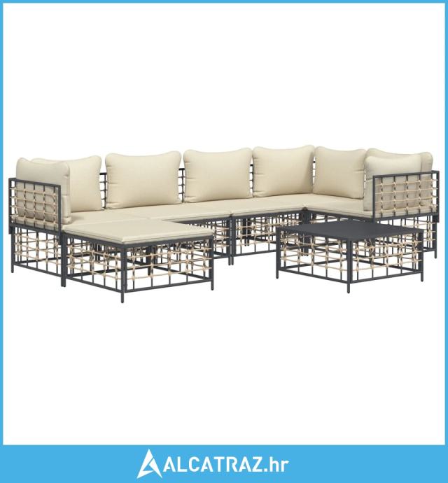 7-dijelna vrtna garnitura od poliratana s jastucima antracit - NOVO