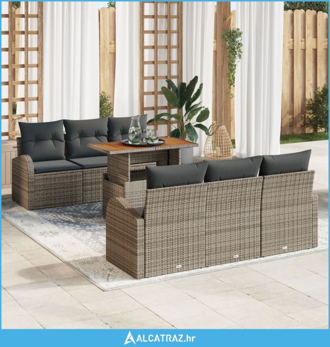 7-dijelni set za obedovanje u vrtu s jastučićima siva poliratan akacij
