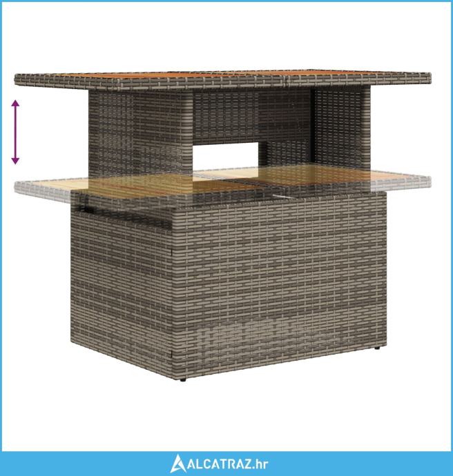 - Materijali otporni na vremenske uvjete: Izrađen od čvrstog poliratan i jakog okvira od akacijinog drveta, ovaj set može podnijeti različite vremenske uvjete, a da pritom zadrži svoj izgled. Uz pravilnu njegu, trajat će dugo na otvorenom.
