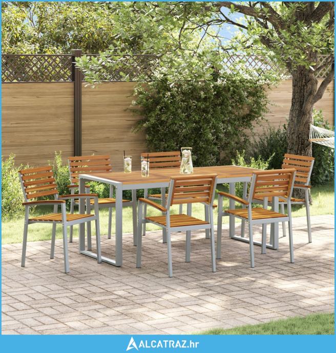 7-dijelni set za objedovanje u vrtu od drva akacije i metala - NOVO