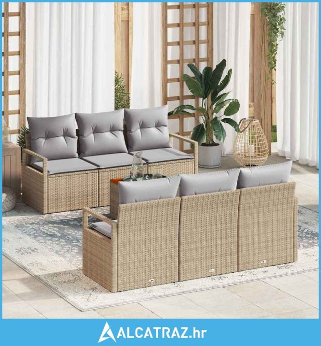 7-dijelni set vrtne sofe s jastučićima bež poli ratan akacija - NOVO