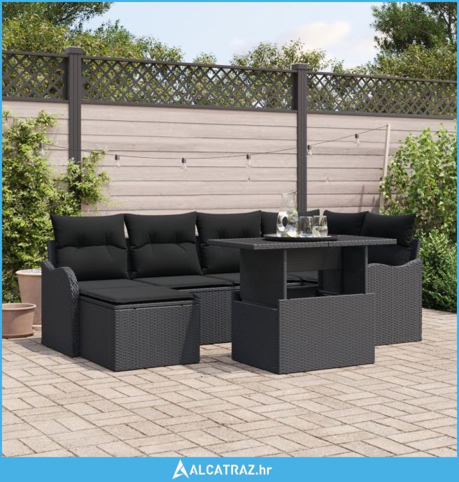 7-dijelni set vrtnih kauča s jastučićima crni poli ratan, kauč za vrt