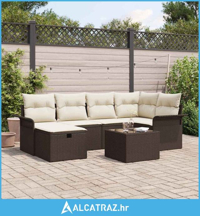 7-dijelni set vrtnih sofa s jastučićima smeđa poliester ratan - NOVO